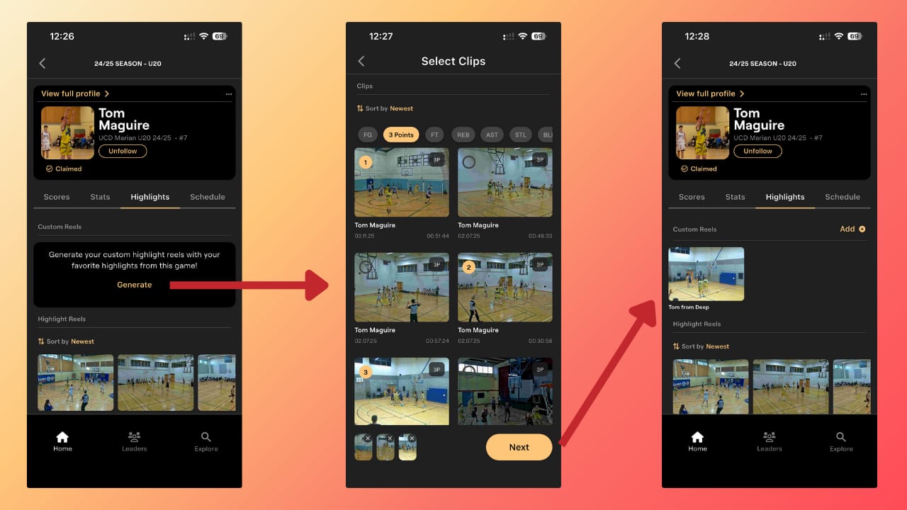 This has been available to our Coach Mode customers for a while, and we brought it to the app. You can now create personalized highlight reels from any game in your library. Pull specific plays, arrange them in sequence, and share with players, parents, or recruiters. Build a recruiting tape. Create a teaching reel. The clips are yours—organize them however you need.